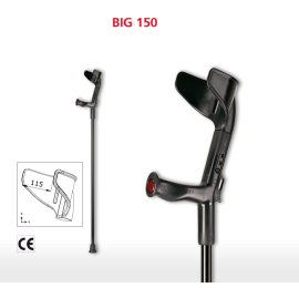БИГ 150 — локтевые костыли, разработанные немецкой компанией Rebotec специально для полных людей. Невероятно крепкая и устойчивая конструкция выдерживает максимальную нагрузку до 150 кг, при этом ее вес всего 800 грамм. Костыль имеет два уровня регулировки по высоте трости и подлокотника. При использовании устройства люди с избыточным весом не испытывают никакого дискомфорта и напряжения в районе предплечья, локтевого соединения, кисти руки и позвоночника.
