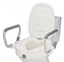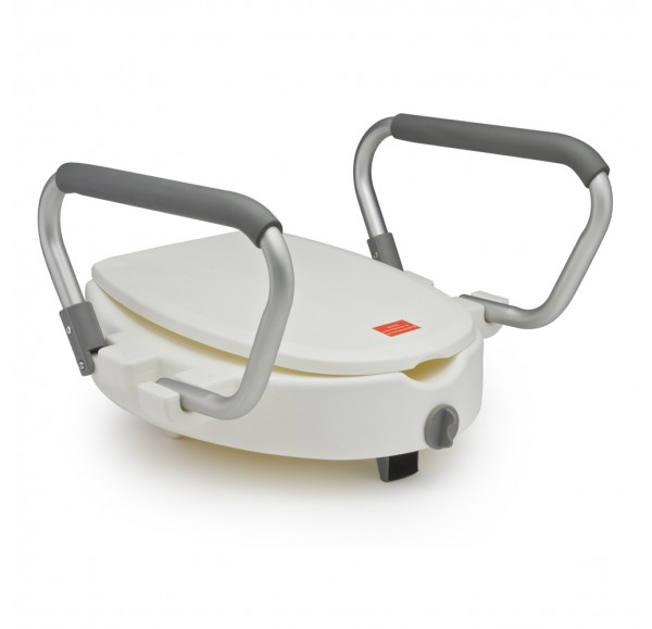 Насадка позволяет пожилым людям и травмированным пользователям не сгибать колени при использовании унитаза. Изготовленная из прочного и приятного на ощупь материала, она выдерживает нагрузку даже при большом весе. Модель выделяется наличием удобных откидных подлокотников с мягкими накладками. Также здесь предусмотрена защитная откидная крышка.