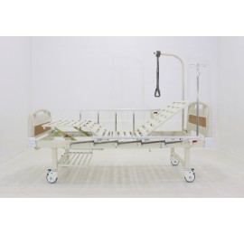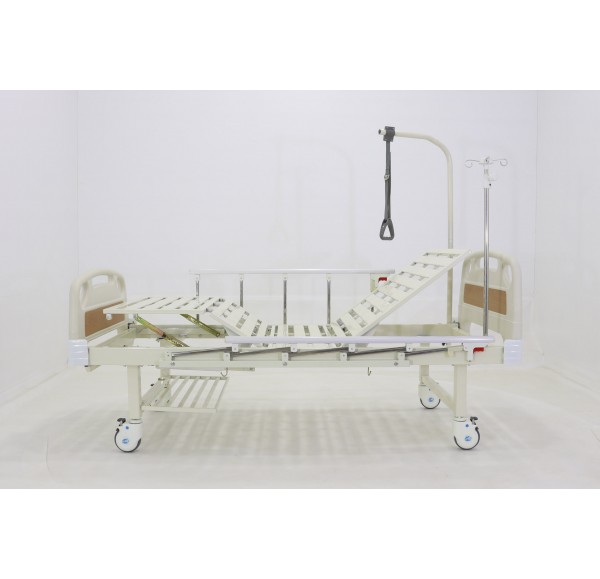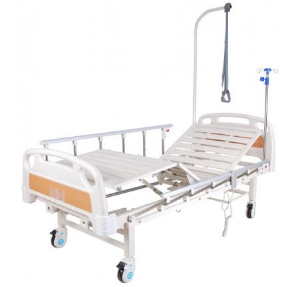 Кровать медицинская функциональная с электроприводом регулировки положения секций. Недорогая четырехсекционная медицинская функциональная кровать с электроприводом регулировки секций. Полная комплектация: штанга для подтягивания, боковые ограждения и инфузионная стойка. Быстросъёмные спинки кровати выполнены из ABS-пластика, со вставками из ламината под дерево и защитными бамперами.