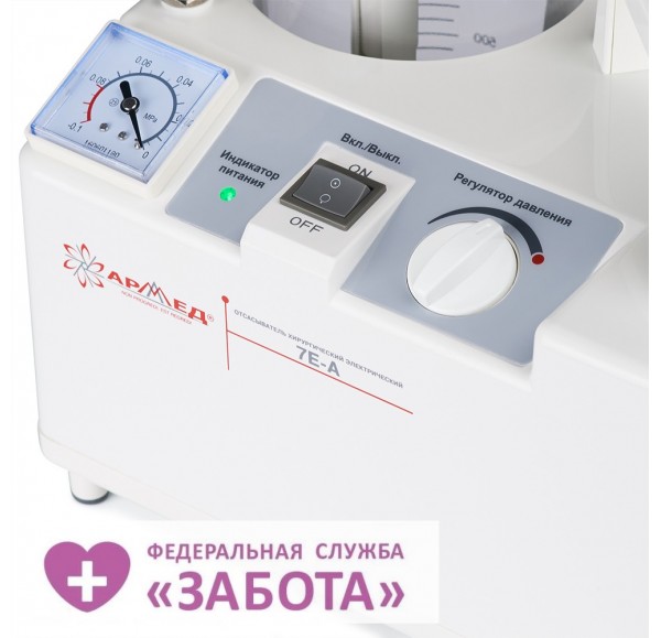 Функциональный хирургический отсасыватель переносного типа. Отличается компактными размерами, наличием удобной переносной ручки и интуитивно понятным управлением. Основные характеристики